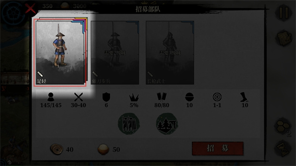 可操控织田信长、德川家康、丰臣秀吉、武田信玄等传奇人物。兵种涵盖步兵、骑兵、弓兵、火枪、器械、舰船六大类,并包含忍者、剑豪、母衣众等特殊部队。部队可通过战斗升级,战力持续成长。