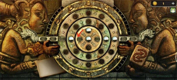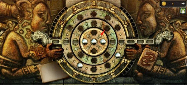 - 参照左侧浮雕提示,调整石板上圆点位置(最终布局见图示红框),即可开启大门。