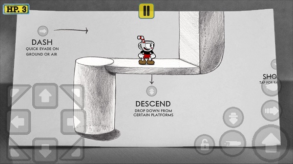 在《茶杯头大冒险无限金币》中,虚拟摇杆在地图界面会显示方向键,但在Boss战斗时默认隐藏。玩家需熟记各功能区域位置,以便精准操控: