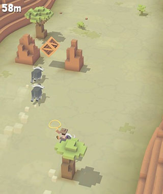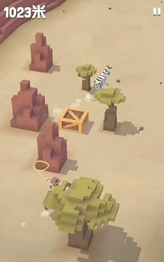 游戏初始,系统会自动分配一头野牛供玩家骑乘。进入地图后,持续按住屏幕控制前进,当发现带有“new”标识的新动物时,操控野牛靠近其身后,在合适距离松开手指,角色便会飞跃而出。