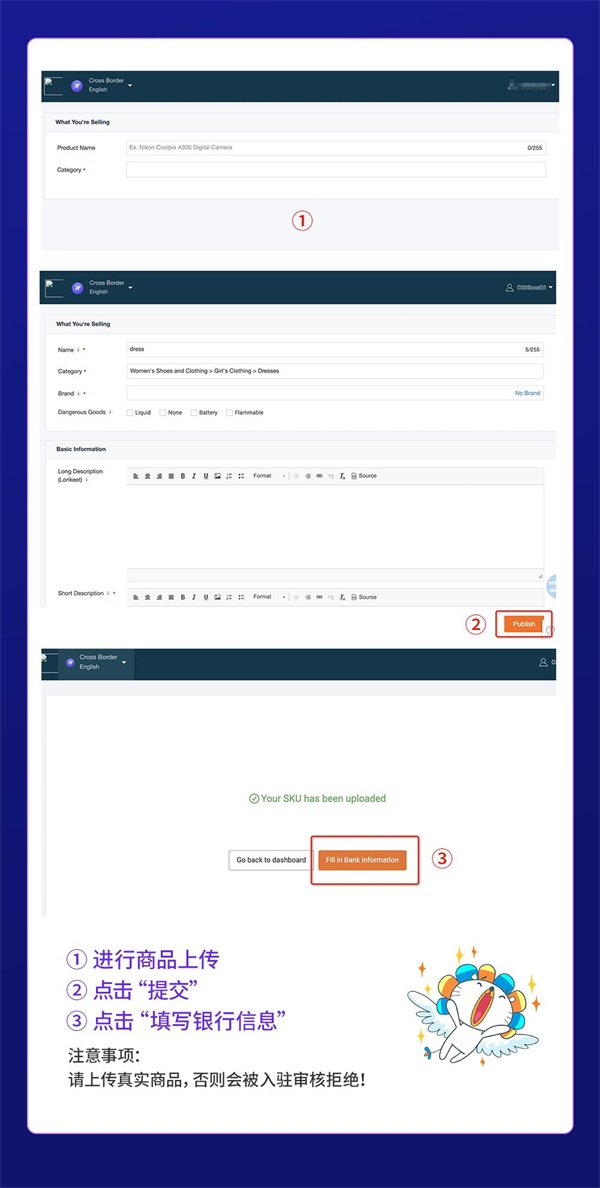 - 入驻前请务必仔细阅读Lazada跨境相关合同条款。