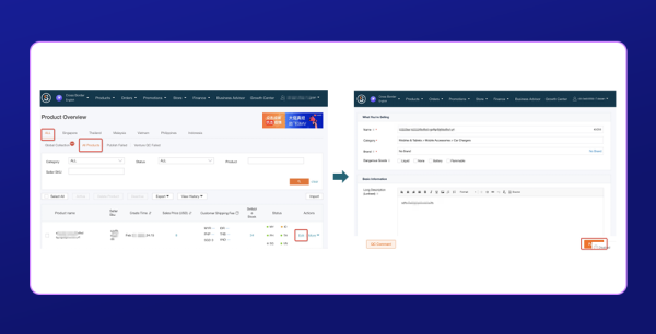 - 发布商品:登录GSP → 管理全球商品 → 选择商品 → 点击“Edit” → 点击“Publish”完成发布(*必做);