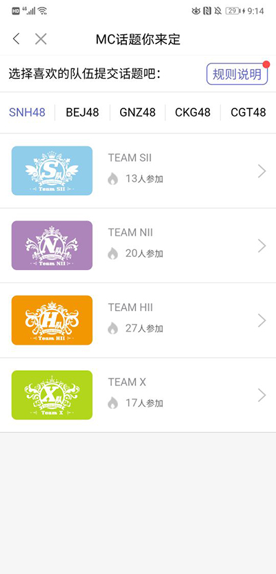 进入主界面后,可浏览SNH48及其姐妹团各分队成员资料,了解最新动态与专属内容。