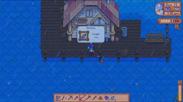 9. 装备鱼饵后,前往动物商店下方河流钓 Pike(梭鱼),雨天全天垂钓日收入可达2000–4000金币;