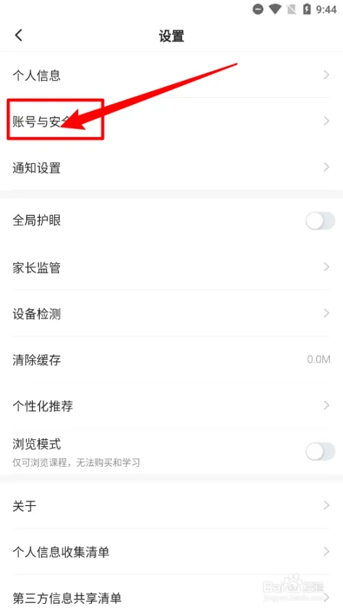 2. 在设置界面中,找到并点击“账号与安全”选项。