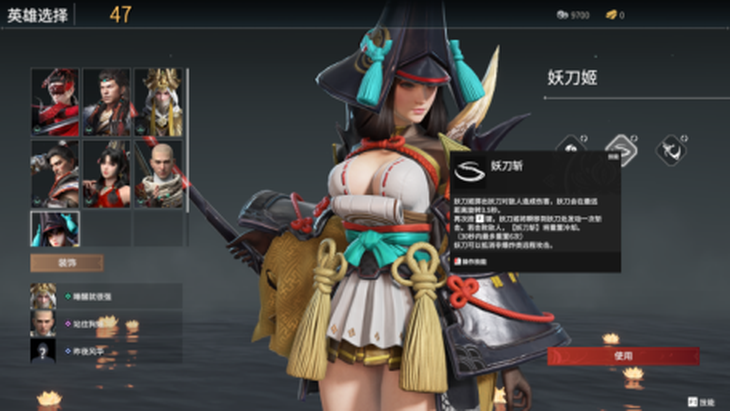 妖刀姬:高爆发突进型角色,可投掷手里剑后瞬移追击,奥义多段伤害兼具位移,配合钩锁令敌人难以逃脱。