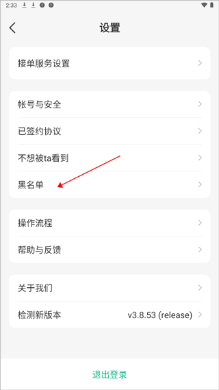 1. 进入【设置】页面,点击【黑名单】选项;