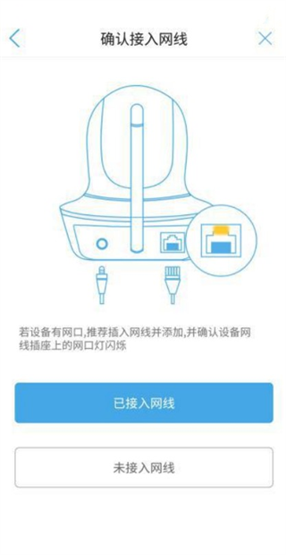 - 若设备未接入网线:点击“未接入网线”,进入配网类型选择界面。