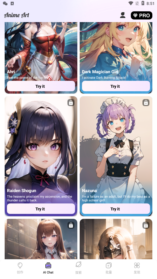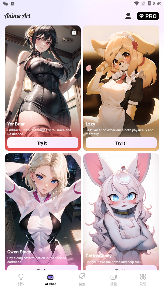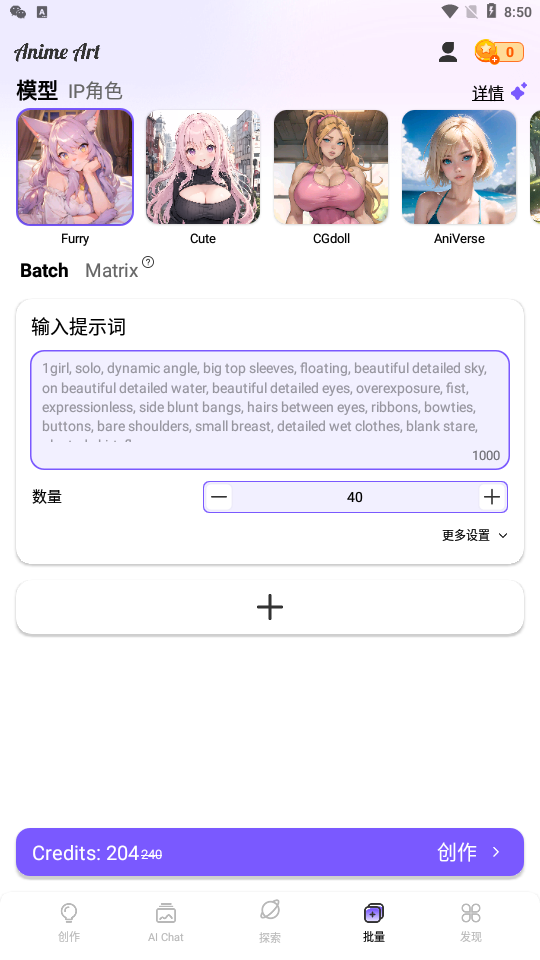 新增AI互动娱乐模块: 除图像生成外,应用现已上线AI聊天功能,内置数百个经过深度训练的角色模型,支持沉浸式对话、角色扮演(RP)及文字冒险游戏,兼顾陪伴性与娱乐性,带来超越绘画的交互体验。