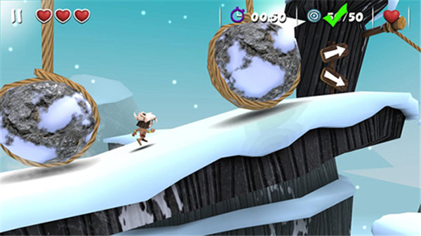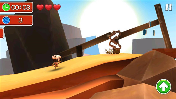 4、角色会自动向前奔跑,点击左下方的“上”按钮可控制跳跃。