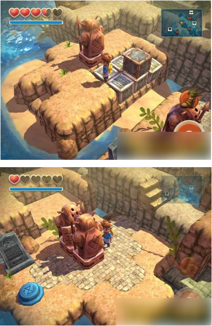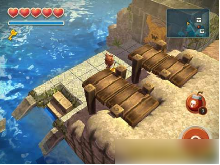 3号岛 炸弹岛:正式开启迷宫探险。调查矿场事故,通过机关解谜、推箱搭桥、水下机关操作等环节,最终在矿洞深处宝箱中获得炸弹。沿途可收集鸡血石、心之碎片等关键物品。获得炸弹后返回制作人小屋,随即启程前往4号岛干涸之地。