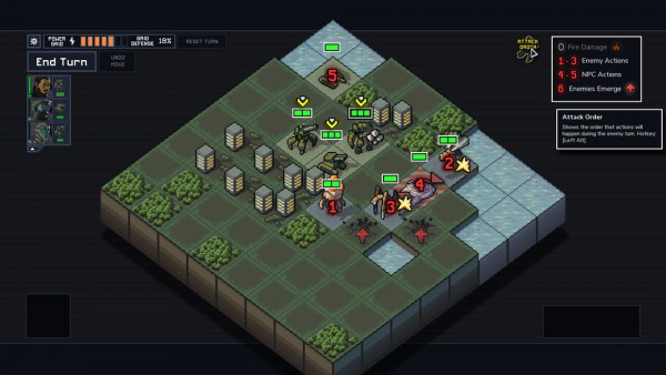 Into The Breach(陷阵之志)是一款由Subset Games开发、Finji Studios发行的回合制策略游戏,改编自同名PC作品。玩家将指挥机甲组成人类最后防线,抵御外星入侵。游戏提供四种各具特色的机甲,配备不同武器与技能,需根据敌人类型和战场局势灵活搭配,制定精准战术赢得胜利。