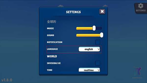 - 在进入游戏前,点击右上角的【settings】进入设置菜单;