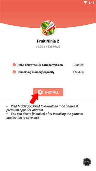 - 下载并启动游戏,授权存储空间读取权限,随后点击下方“Install”按钮完成安装。