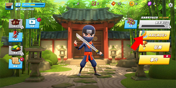 - 安装完成后进入游戏,完成新手引导后,在主界面点击右侧的“Arcade+”按钮。