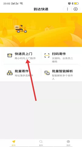3. 进入后点击“快递员上门”选项。