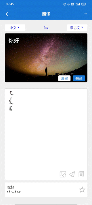 2. 拍照翻译功能:只需拍摄带有蒙古文的图片,如标识、菜单或路牌,即可快速获取准确的翻译结果,极大提升实际使用效率。