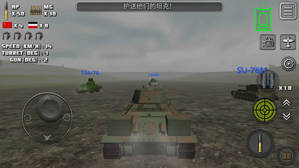 3、使用左侧虚拟摇杆控制坦克移动方向,实现灵活走位。