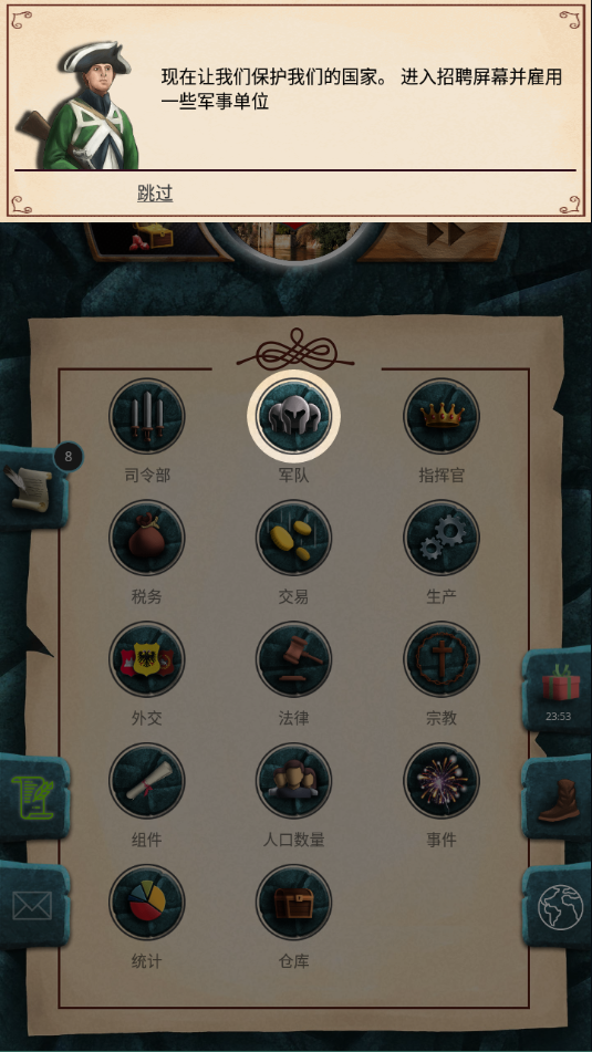 总体来看,虽然内容繁复且系统庞大,但只要掌握核心逻辑,就能从容应对复杂局势。陆军主要分为指挥模块与军营系统,前者用于执行攻击、侦察、破坏、授予独立等操作,也可进行军事演习提升部队战斗力。