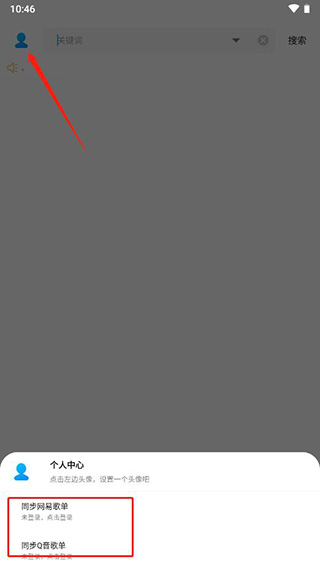 1. 点击左上角头像进入个人中心,找到“同步网易歌单”选项;