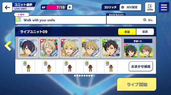 因“妈妈”与“Puka”声线偏高,与其他成员混声时略显突兀,建议置于助战位。本曲共七人参与低声部,MV位五人可替换,上述两位请谨慎安排。