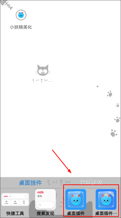4、返回手机主屏幕,长按空白区域直至弹出插件菜单,搜索“小妖精美化”相关组件;