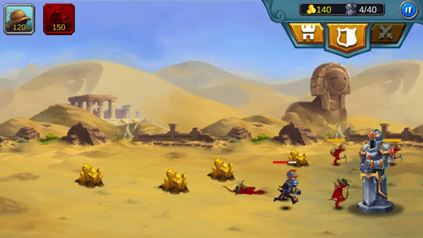 开局优先招募一名矿工,选中后派遣至矿区采集金币,为后续兵种训练提供资源保障。注意各兵种存在训练冷却时间,需提前规划出兵顺序以应对敌军攻势。