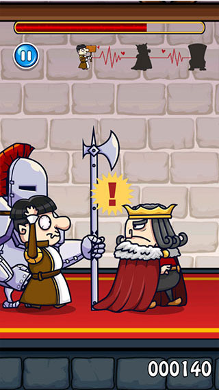 屏幕上方展示的进度条要被填满才能完成攻击,但时刻留心国王可能的突然回头行为。